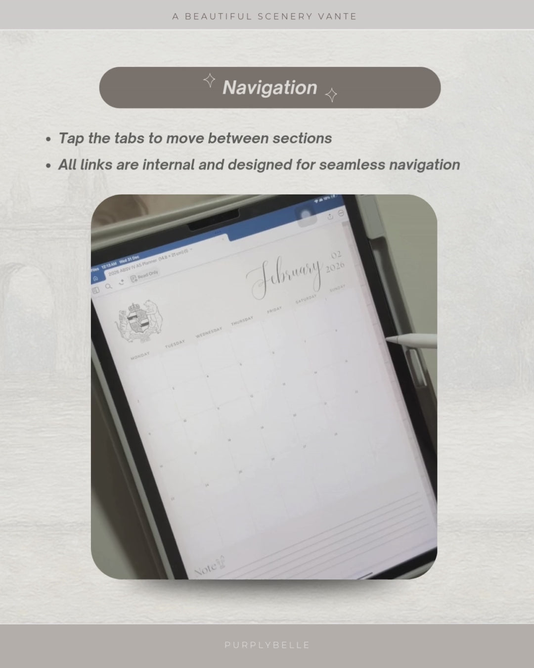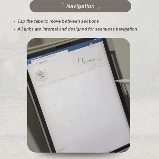 A hyperlinked digital planner designed for intentional planning, reflection, and quiet moments throughout 2026.